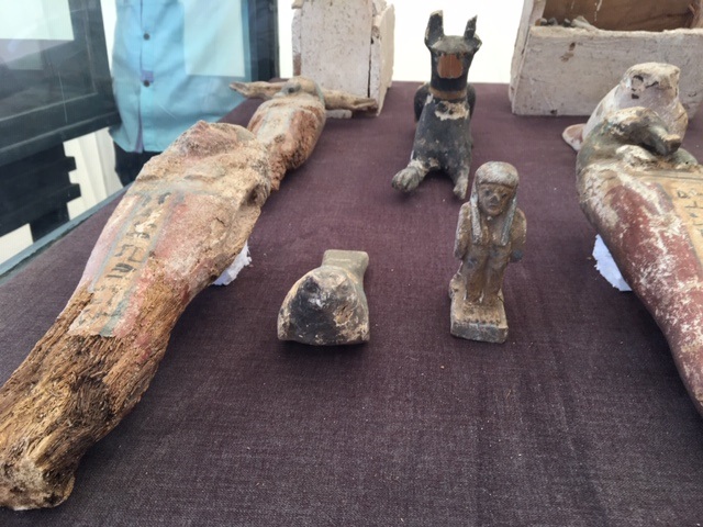 كما عثرت البعثة أيضا علي بردية كاملة مكتوبة بالكتابة الهيراطيقية وملفوفة بخيط من الكتان، بالإضافة إلى عملة بطلمية من البرونز المخلوط بالنحاس من عصر الملك "بطليموس الثانى"، ومجموعة من الأوستراكات المصنوعة من الفخار، والجزء العلوي لغطاء آنية كانوبية مصنوعة من الحجر الجيري على شكل قرد الذي يمثل المعبود "حابب" أحد أبناء حورس الأربعة.