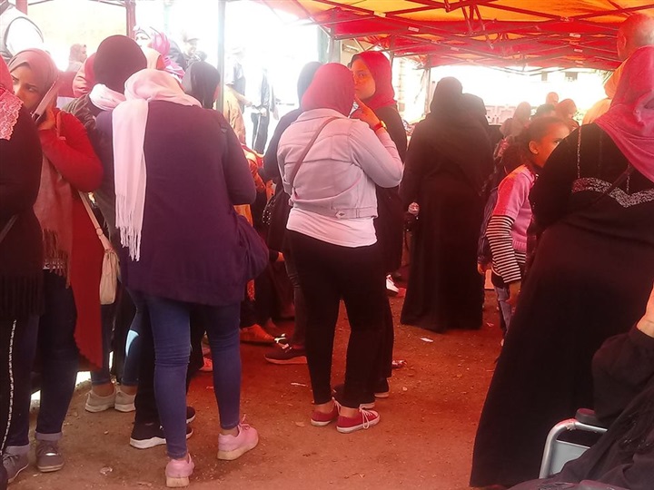 تفوق العنصر النسائي أمام اللجنة الانتخابية بمدرسة التوفيقية، بمنطقة شبرا مصر، لبدء عملية التصويت على التعديلات الدستورية.