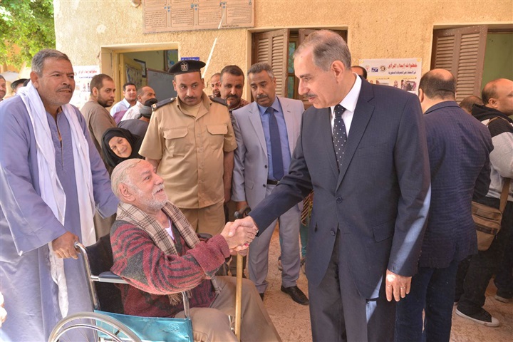 في لفتة انسانية.. محافظ أسيوط يصطحب عم "ناثان" ذو 83 عاماً إلى داخل لجنة على كرسي متحرك للإدلاء بصوته