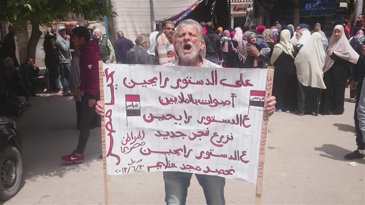 شاهد.. "على اللجان رايحين أصوات بالملايين".. شعار مواطن بعد الإدلاء بصوته في التعديلات الدستورية بالإسكندرية