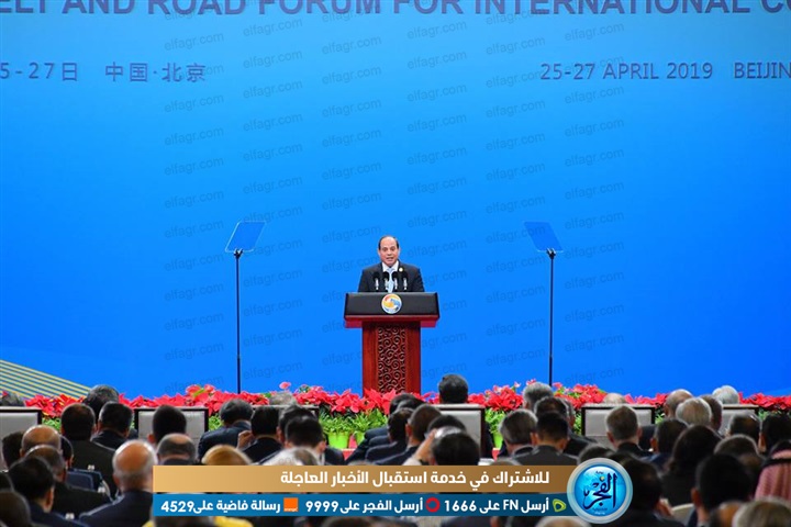 إن حرصي على تلبية دعوة صديقي فخامة الرئيس "شي جين بينج" للمشاركة في هذه القمة، إنما ينبع من اهتمام مصر بمبادرة الحزام والطريق، ولإيماننا بأن القواسم والتحديات المشتركة التي تجمعنا كدول أطراف فيها، جنباً إلى جنب مع الرؤية التي تأسست عليها المبادرة ومحاورها ومشروعاتها، ينبغي أن تشكل أسس التعاون بين أطرافها، بقصد تحقيق تطلعات شعوبنا ومصالح دولنا تجاه الاستقرار والتنمية.