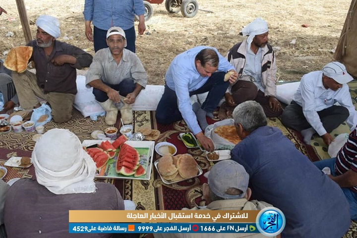 "بالفطير والعسل".. رئيس جامعة سوهاج يشارك عمال مزرعة الكوثر غدائهم (صور)