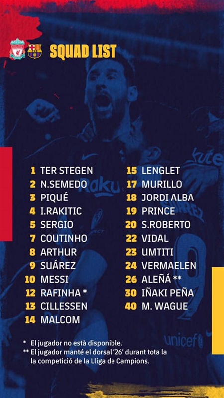 قائمة برشلونة لمباراة ليفربول