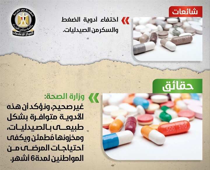 ونفى المركز الإعلامي لمجلس الوزراء ما تردد حول توقف مبادرة "القضاء على قوائم الانتظار" لعدم جاهزية المستشفيات، وتأجيل تطبيق منظومة التأمين الصحي الجديدة لضعف المخصصات المالية، وما أثير حول اختفاء أدوية الضغط والسكر من الصيدليات، وما تدول حول إعادة استخدام السرنجات الطبية في المستشفيات الحكومية.