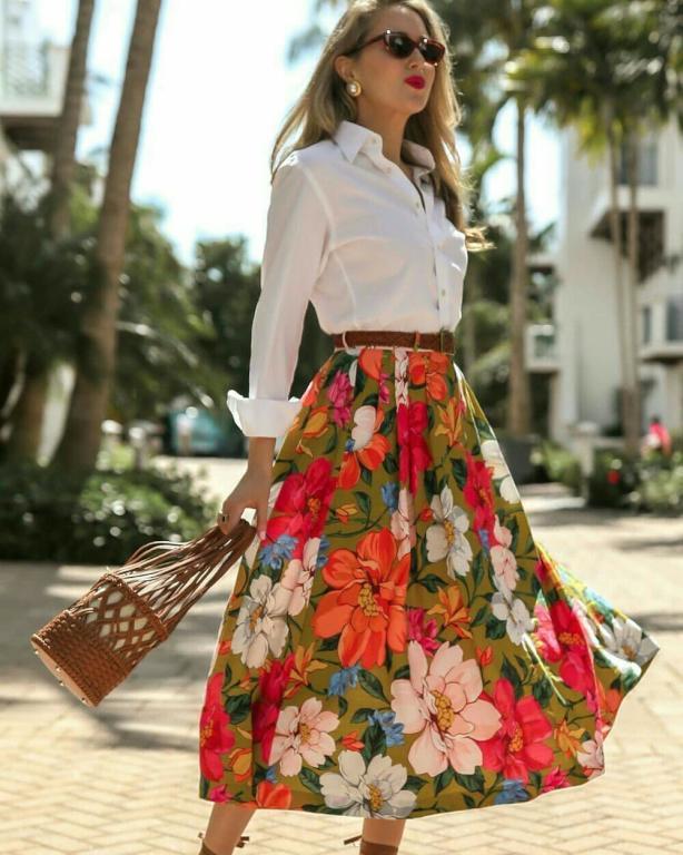 ظهرت الأزياء المطبعة بالورود الربيعية كصيحة بارزة هذا العام، ومنها التنانير الميدي المزينة برسوم ربيعية تنوعت بين الورود و الطيور البرية.