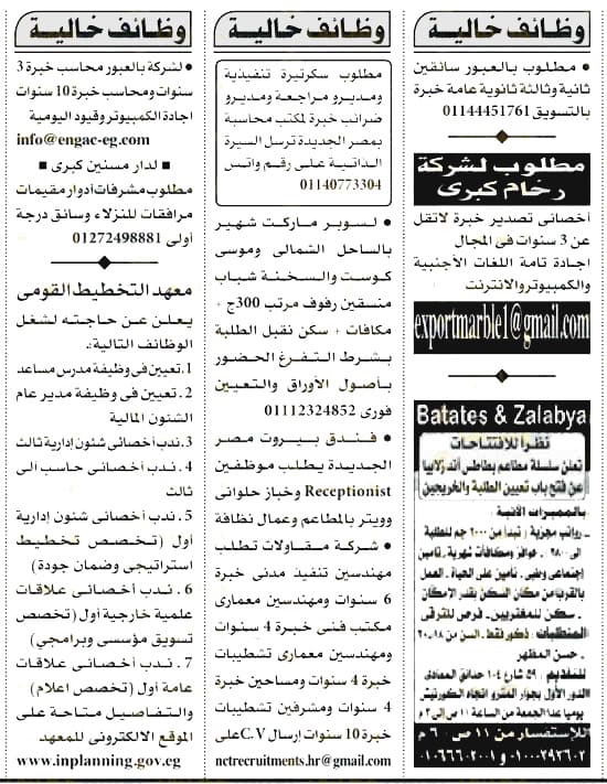 وظائف خالية بجريدة الاهرام اليوم الجمعة 17/5/2019