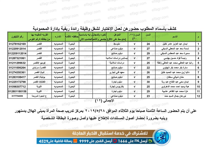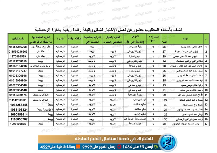 ننشر أسماء المقبولين لاستكمال اختبارات "الرائدات الريفية" بالبحيرة (صور)