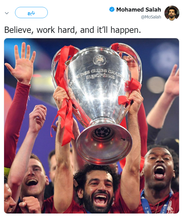 محمد صلاح يلخص تتويجه بدوري الأبطال في كلمتين (صورة)