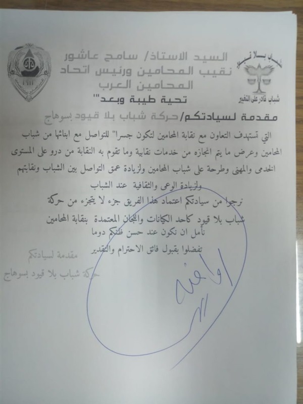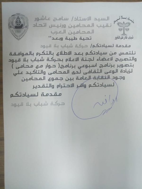 نقيب المحامين يوافق على ٤ طلبات لـ "شباب بلا قيود"