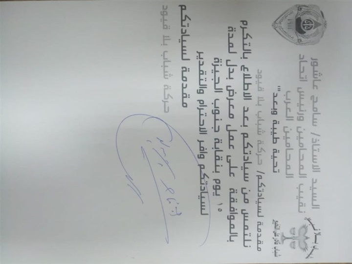ووافق نقيب المحامين على طلبات ممثلي الحركة، التي تضمنت طلب اعتماد فريق منبثق عن الحركة بسوهاج، وتجديد وصيانة أتوبيس خط العياط الجيزة، وتنظيم معرض بدل لمحامي جنوب الجيزة، وإطلاق برنامج أسبوعي تحت عنوان "حوار مع محامي"، بالتعاون مع موقع النقابة العامة.