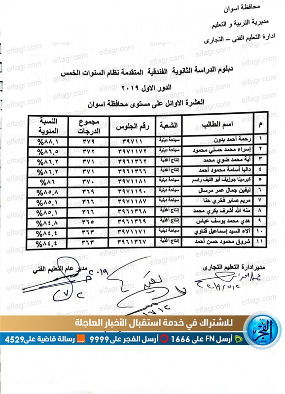 ننشر أسماء أوائل الدبلومات الفنية بأسوان