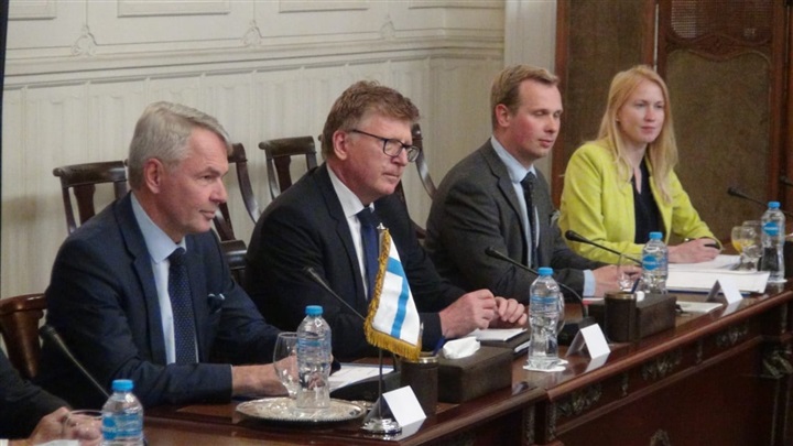 وبحث الجانبان العلاقات "المصرية - الفنلندية" وسبل تعزيزها فى مختلف المجالات بالإضافة إلى القضايا الإقليمية والدولية محل الاهتمام المشترك، كما عقد الوزيران مؤتمرا صحفيا مشتركا فى ختام المباحثات.