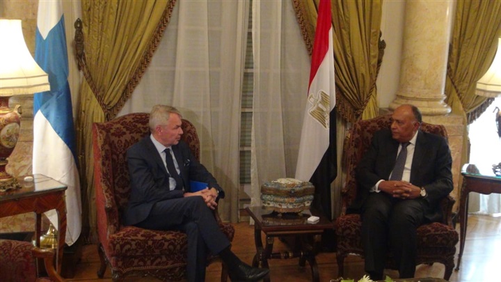 التقى سامح شكرى، وزير الخارجية، اليوم الثلاثاء، بنظيره الفنلندى بيكا هافيستو الذى يقوم حاليا بزيارة إلى القاهرة، حيث عقدا جلسة مباحثات مشتركة.