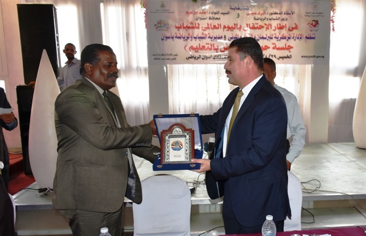 نظمت الإدارة المركزية للبرلمان والتعليم المدنى ومديرية الشباب والرياضة بأسوان، جلسة حوارية بمناسبة الإحتفال باليوم العالمى للشباب.