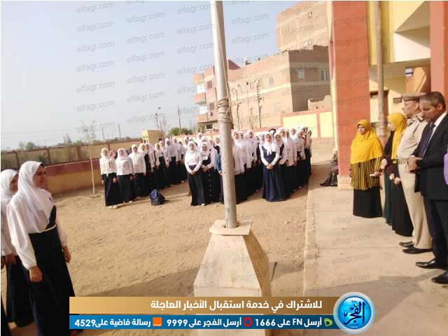 ضابط شرطة يؤدي تحية العلم مع طلاب "النويرة" ببني سويف (صور)