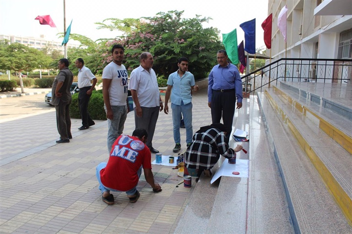 وفي كلية الآداب أشار الدكتور رجب عبد المولي أنه تم تركيب علم مصر على جميع المباني وعلي المداخل والمخارج بالكلية ودهان البلدورات وجذوع الأشجار، كما تم بطب الأسنان تشكيل فرق عمل ووضع خطة استقبال الطلاب الجُدد تحت شعار " كلية رائدة وشباب مبدع" وتم إعداد بطاقات التعارف إلى جانب تنفيذ وإعداد فيلم وثائقي وكوميدي تعريفي لطلاب كلية طب الأسنان والمواقف التي تواجههم.