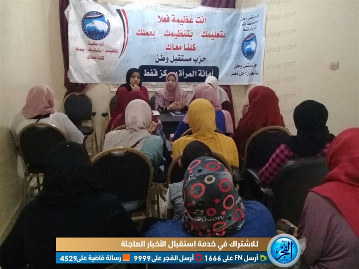 واصل حزب مستقبل وطن، وبإشراف أمين المرأة بالأمانة المركزية النائبة رشا رمضان، فعاليات حملة "أنتِ عظيمة"، حيث تم تم تنظيم ندوة موسعة حول "تنظيم الأسرة" بمركز قفط جنوب محافظة قنا بحضور أبو الحسن الجزار أمين الحزب بمركز قفط والمحاسب محمود عبد الفتاح آدم أمين التنظيم بالمركز وأعضاء هيئة مكتب المركز وعدد من السيدات.