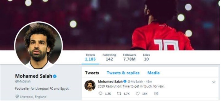 وحول محمد صلاح اسم حسابه على تويتر إلى لاعب كرة قدم في ليفربول الإنجليزي بعد أن كان لاعبًا في ليفربول ومصر "footballer for liverpool and egypt"