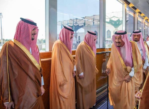 وقد وصل في معية خادم الحرمين الشريفين كل من الأمير منصور بن سعود بن عبدالعزيز، والأمير طلال بن سعود بن عبدالعزيز، والأمير خالد بن سعد بن فهد، ومستشار خادم الحرمين الشريفين الأمير خالد بن بندر بن عبدالعزيز، والأمير فيصل بن سعود بن محمد، وأمير منطقة الباحة الأمير الدكتور حسام بن سعود بن عبدالعزيز، ومستشار خادم الحرمين الشريفين الأمير الدكتور عبدالعزيز بن سطام بن عبدالعزيز، والأمير سعود بن سلمان بن عبدالعزيز، والأمير عبدالمجيد بن عبدالإله بن عبدالعزيز.