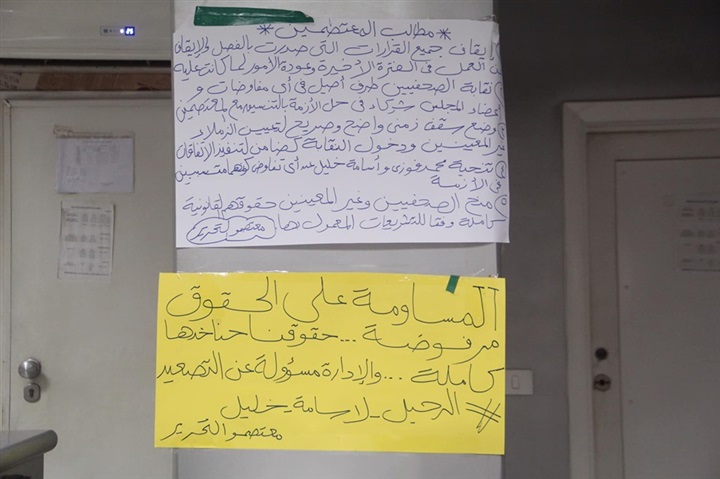وأعلن مجلس نقابة الصحفيين، تضامنه الكامل مع الزملاء الصحفيين المعتصمين بمقر الصحيفة، داعيًا كافة الزملاء بالصحيفة للانضمام للاعتصام، معتبرًا أن ذلك واجب نقابي.