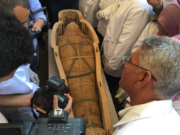 وكان أول سؤال وجهناه للدكتور خالد العناني وزير الآثار، ونحن نقف في وسط 30 تابوتًا أثريًا قديمًا، من هو بطل الحدث اليوم؟