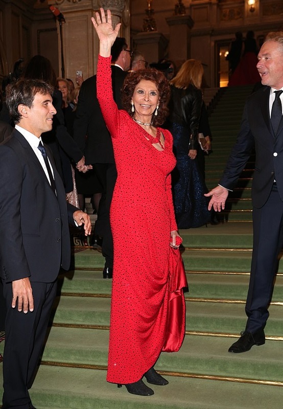 وارتدت صوفيا لورين فستان سهرة أحمر اللون وصعدت إلى المسرح بمعاونة آخرين، لأنها صارت تعرج منذ سقوطها في منزلها ولم تعد قادرة على السير بشكل جيد.