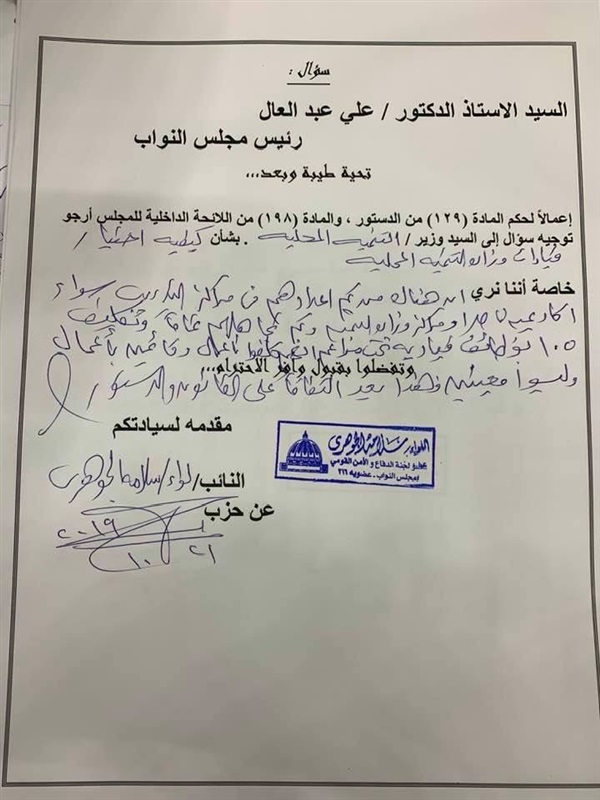 تقدم النائب سلامة الجوهري، عضو مجلس النواب، بسؤال موجه إلى وزير التنمية المحلية بشان كيفية اختيار قيادات وزارة التنمية المحلية.