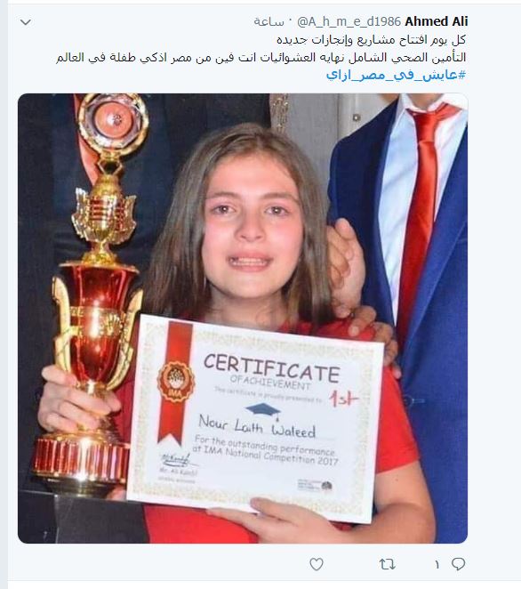 فيما أوضح أحمد علي، أنه أصبح يري إنجازات مصر جليه أمام الجميع، قائلًا أن كل يوم لدي مصر مشروعات عدة وكذلك إنجازات في كافة المجالات، موضحًا أن أذكي طفلة في العالم نور وليد، مصرية، بما يسوق للسياحة العلمية في مصر.