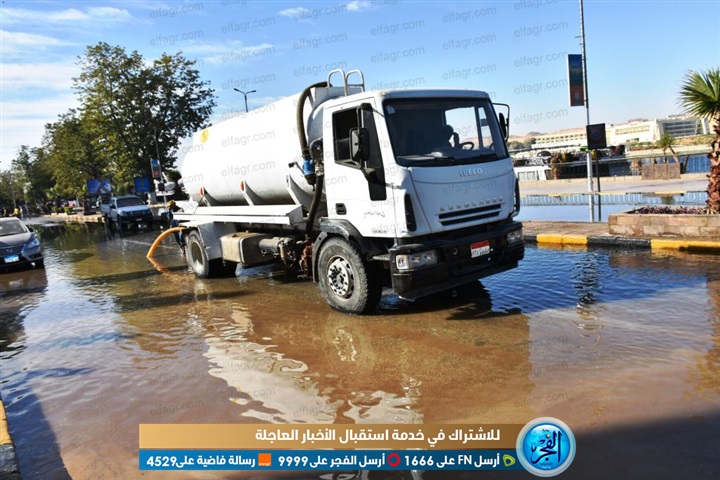 ولفت إلى أنه تم إغلاق المحابس العمومية لوقف تدفق مياه الشرب حتى يتسنى شفط تجمعات، وتراكمات المياه من الشارع الرئيسى للكورنيش والشوارع الجانبية من خلال طلمبات سيارات الحماية المدنية وشركة مياه الشرب والصرف الصحي.