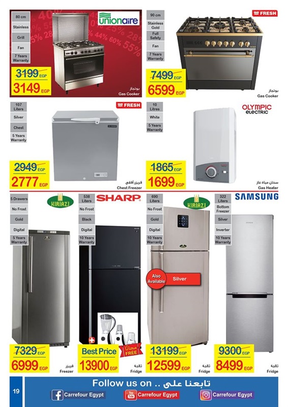 كذلك مستلزمات المطبخ والأجهزة الكهربائية بالإضافة إلى العروض المتميزة التي يقدمها كارفور على الأجهزة الكهربائية، فإنه يقدم أيضا بمناسبة العام الجديد وعيد ميلادي الـ 17 على افتتاح أول فرع له في مصر، فهناك عروضا خاصة على مستلزمات المطبخ والكثير من السلع الغذائية، منها اللحوم والفاكهة والأسماك والدواجن، وكذلك الزيوت والأرز والسكر، كما نجد هناك خصومات خاصة جدا على كل مستلزمات النظافة ومساحيق الغسيل، فتابعوا معنا كل العروض وكل ماهو جديد بالصور لتختاروا منها ما تريدون.