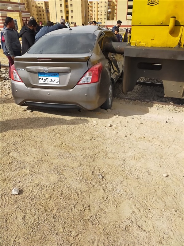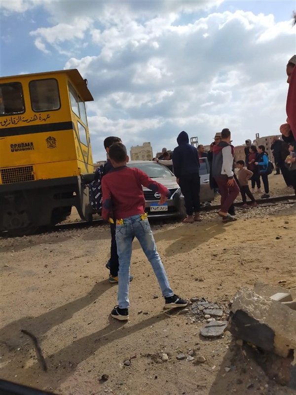 إصابة فتاة إثر تصادم قطار بسياة في السويس "صور"