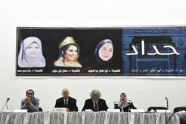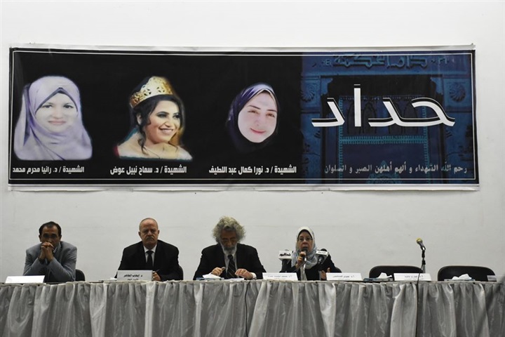 وأضافت خلال حفل تأبين شهيدات الطب الثلاثة (رانيا محرم، سماح نبيل، نورا كمال) اللآتي وافتهن المنية، إثر حادث ميكروباص المنيا، صباح الأربعاء الماضي، في أثناء قدومهن من إلى القاهرة لحضور دورة تدريبية، تم إخطارهن بها بشكل مفاجئ، أن الحماية مطلوبة للطبيبات والأطباء بشكل عام، ومراعاة التدريبات التي توفر لهم.