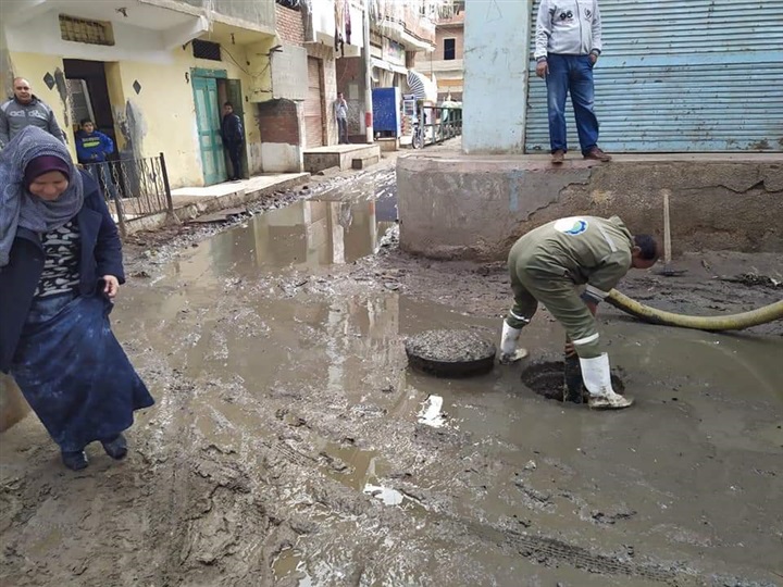 وعلى الفور تم تنظيف خطوط الصرف الصحي وسحب تجمعات المياه.
