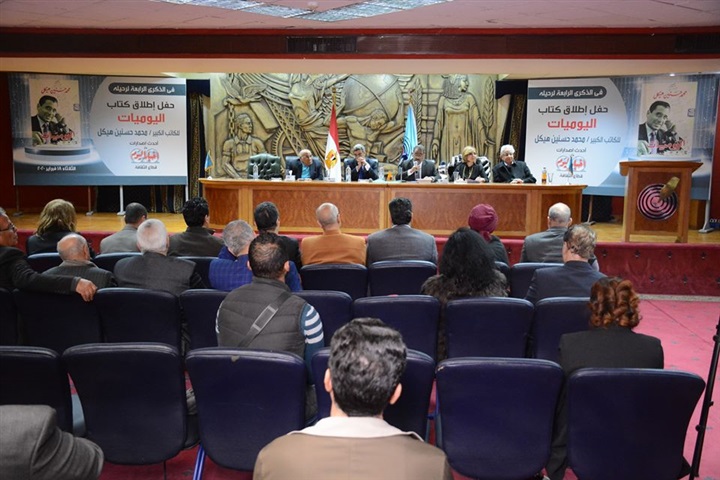 استضافت نقابة الصحفيين، مساء اليوم، احتفالية لإطلاق كتاب "اليوميات"، الذي صدر مؤخرًا عن قطاع الثقافة بمؤسسة أخبار اليوم، في الذكرى الرابعة لرحيل الكاتب الكبير الراحل محمد حسنين هيكل.