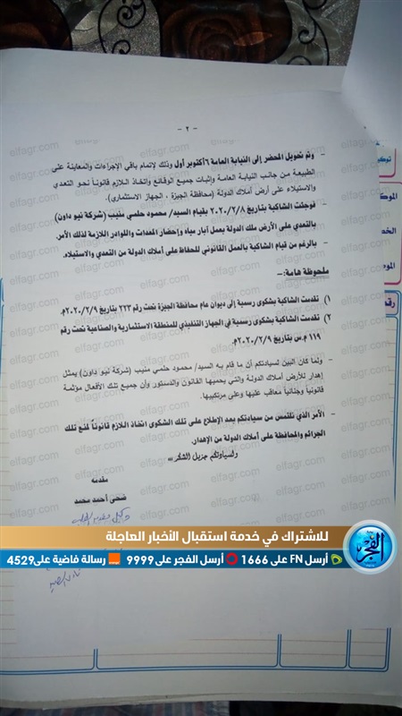 واستغاثت مقدمة البلاغ، باللواء محمود توفيق وزير الداخلية، ومحافظ الجيزة، مؤكدة ثقتها في أجهزة الدولة، التي تطبق القانون على الكل سواسية، دون تمييز، وتعيد الحق لأصحابه.
