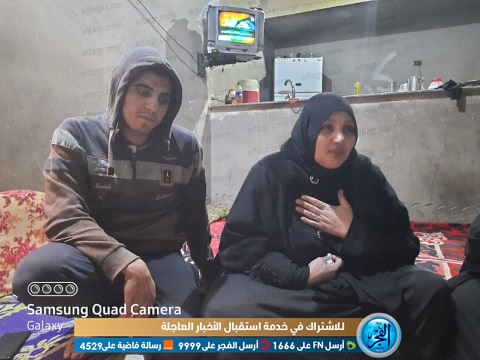 في منتصف إحدى غرف الطابق الأرضي كانت تجلس سيدة خمسينية العمر، اتشح قلبها بالسواد بعد فقدانها أحد أبنائها، حال عمله على التوك توك ملك زوج شقيقته الأكبر منه، وبدأت حديثها إلى الفجر، قائلة: "ابني اسمه محمد مسمي على اسم "جده" وكنا نقول له (مصطفى)، وعندي كريم ودينا أكبر منه، وملك أصغر منه، وفي يوم الجريمة خرج يبدل أنبوبة بوتاجاز لأخته، وبعدها خرج يشتغل على التوك توك، وكانت حوالي الساعة 7 مساءً، وتأخر عن ميعاد وصوله، وخرجوا للبحث عنه، وبعدها عرفت إنهم لقيوا على التوك توك وشبشب مصطفى، شعرت إن إبني قُتل، وطلبت من الله أن يثبتني عند خبر وفاته، ولم يمر سوي ساعات قليلة، وسمعت خبر وفاته، وطلبت أشوفه قبل دفنه.. ربنا يرحمه كان دائما يقولي: لما أموت يا أمي كل يوم زوريني انتي وأبويا، وأقرأوا لي الفاتحة".