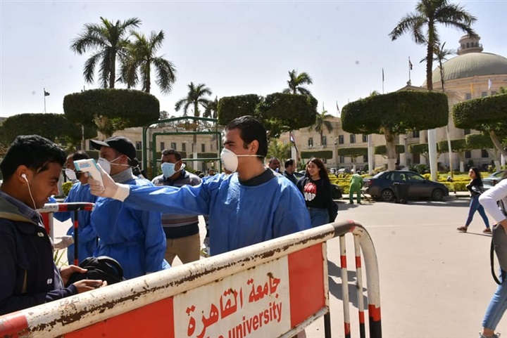 وفي السياق نفسه، قال الدكتور محمد عثمان الخشت، رئيس جامعة القاهرة: إن الجامعة قامت بالتنسيق مع وزارة الصحة للتعامل مع الحالات المشتبه إصابتها بفيروس كورونا الجديد من خارج الجامعة، واتخاذ إجراء وقائي معها وتخصيص سيارة إسعاف لنقلها إلى المستشفيات التي حددتها وزارة الصحة للتعامل معها وعلاجها.