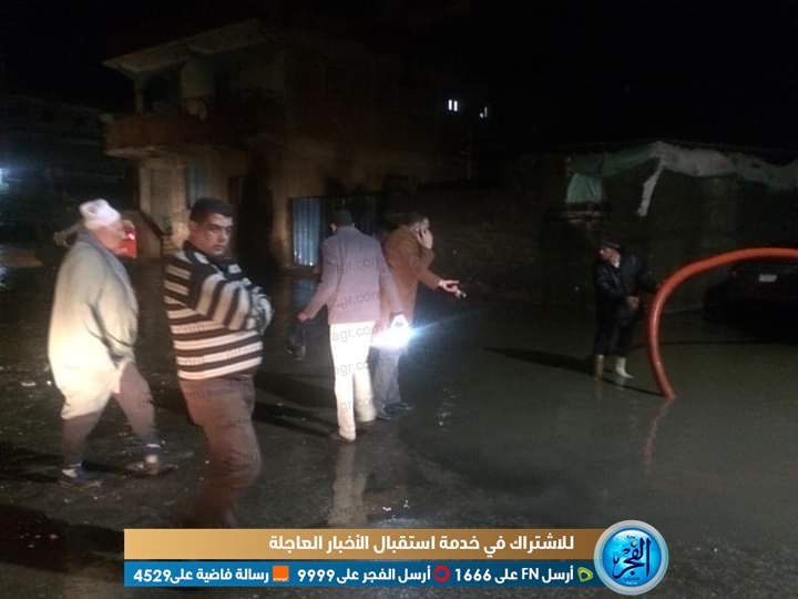 على ضوء الكشافات.. استمرار كسح مياه الأمطار بكفرالشيخ (صور)