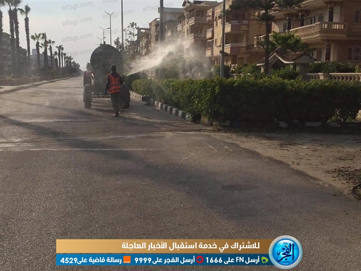 حملات تطهير مكثفة على مدار 24 ساعة بشوارع جمصة لمجابهة فيروس كورونا