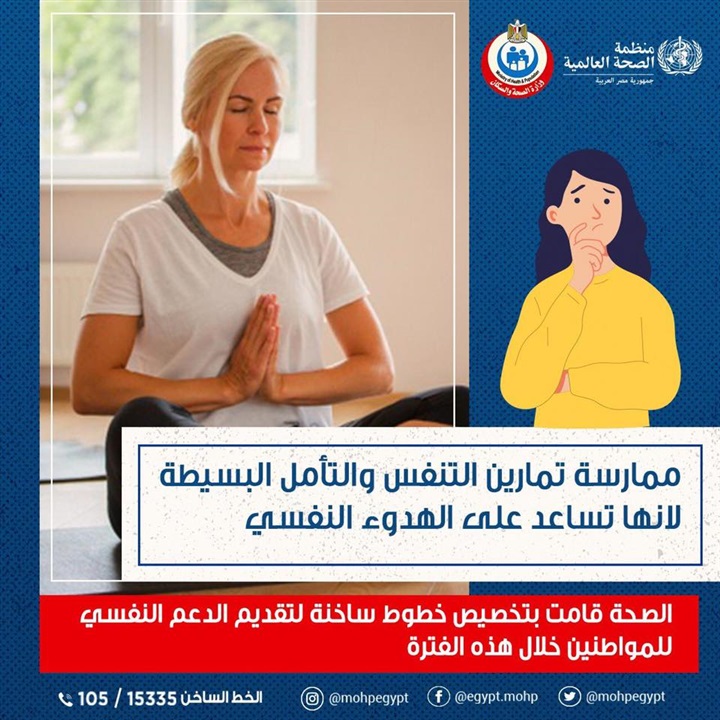 5- ممارسة تمارين التنفس والتأمل البسيطة لأنها تساعد على الهدوء النفسي.