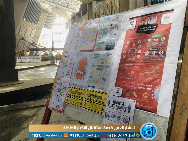 يذكر أن المتحف لم يتوقف العمل يومًا واحدًا، حيث يتم التعقيم والتطهير بالموقع ومعامل الترميم والمكاتب الإدارية كما يتم فحص العاملين أثناء دخولهم صباحًا وانصرافهم مساءً، وبلا أي استثناءات بواسطة ترمومتر الحرارة "الليزري"، ومرورهم على ممر التعقيم قبل الدخول إلى المشروع.