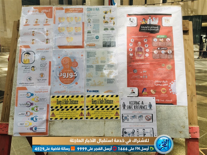 ويتم توزيع الكمامات الطبية على جميع العاملين ووضع العلامات الإرشادية بعدم المصافحة وتم توزيع منشورات إرشادية بالسلامة الصحية، كما تم عقد دورة تدريبية مع كافة العاملين بالمتحف للتوعية بالفيروس وطرق الوقاية منه.