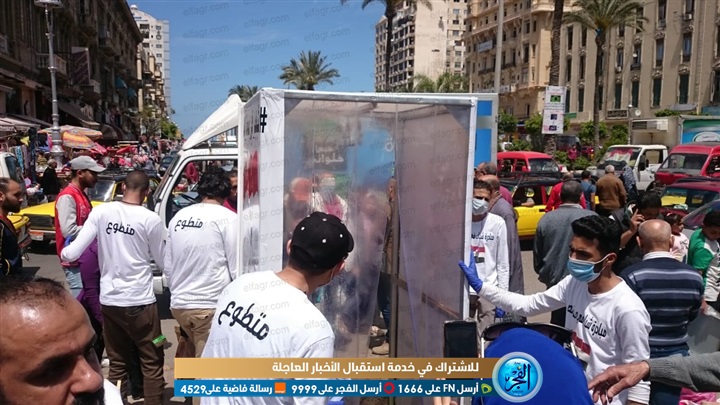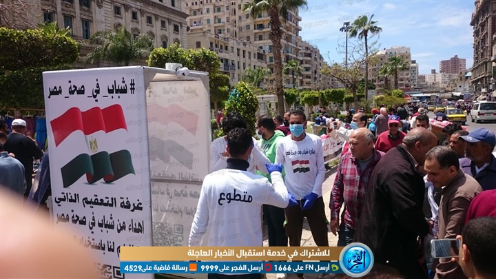 تحت شعار "شباب في صحة مصر"نظم مجموعة من الشباب، اليوم الأحد، فاعلية بمنطقة المنشية بالإسكندرية، تضمنت وضع جهاز تعقيم ذاتي للمواطنين أمام مدخل شارع السبع بنات، والذي يضم عدد من الأسواق الشعبية، ويشهد زحاما على مدار الساعة، وذلك للحد من إنتشار فيروس كورونا المستجد.
