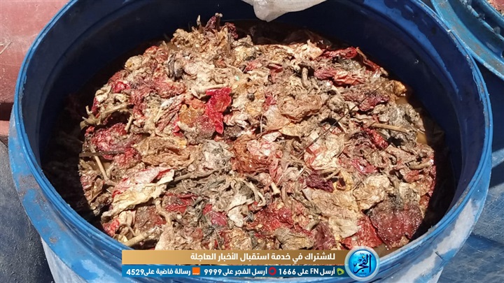 كما تم ضبط 150 جردل ليمون معصفر باجمالي وزن 1200 كيلو، و234 جردل مخلل منتهي الصلاحية باجمالي وزن 1912 كيلو،5 كيس مخلل مشكل بدون بيانات زنة 10كيلو جرام،وتم سحب عينات وارسالها للمعمل للتحليل، وتحرر عن ذلك المحضر اللازم وجار العرض على النيابة العامة.