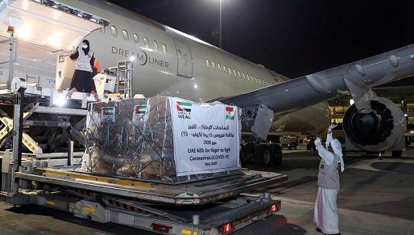 وإلى النيجر، أرسلت دولة الإمارات، في 10 مايو، طائرة مساعدات تحتوي على 6 أطنان من الإمدادات الطبية، لدعمها في الحد من انتشار فيروس كورونا المستجد "كوفيد-19"، يستفيد منها 6 آلاف من العاملين في مجال الرعاية الصحية لتعزيز جهودهم في احتواء انتشار الفيروس.