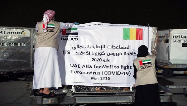 أرسلت دولة الإمارات، في 10 مايو الجاري، طائرة مساعدات تحتوي على 6 أطنان من الإمدادات الطبية وأجهزة الفحص إلى جمهورية مالي، لدعمها في الحد من انتشار فيروس كورونا.
