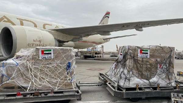 ساهمت دولة الإمارات بنحو 3 أطنان من المساعدات إلى الاتحاد الأفريقي، كما نقلت 15 طنا من المساعدات، التي قدمتها منظمة الصحة العالمية لتعزيز جهود أكثر من 30 دولة أفريقية في مكافحة جائحة "كوفيد - 19".
