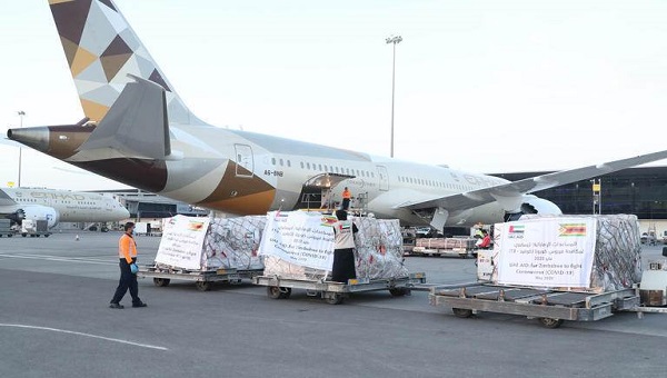 وبحمولة 7.7 طن، أرسلت الإمارات طائرة مساعدات من الإمدادات الطبية إلى زيمبابوي في 6 مايو، لدعمها في الحد من انتشار كورونا، يستفيد منها أكثر من 7.7 ألف من العاملين في مجال الرعاية الصحية.