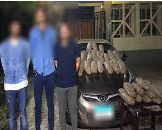 ضبط ثلاثة أشخاص، حال استقلالهم سيارة بدائرة مركز شرطة بلبيس بمحافظة الشرقية، وبحوزتهم (عدد 30 لفافة لمخدر البانجو وزنت 75 كيلو جرام - مبلغ مالى – 3 هاتف محمول).