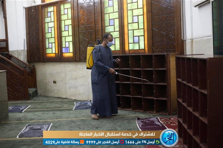 تعقيم مسجد السلام بمدينة نصر استعدادا لاستقبال المصلين (صور)